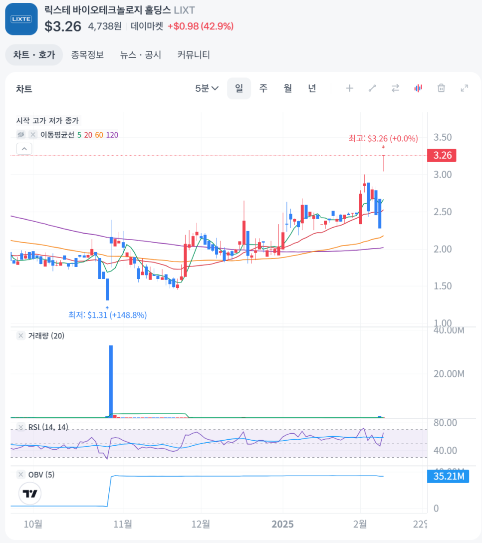 릭스테 바이오테크놀로지 홀딩스(Lixte Biotechnology Holdings Inc.)의 최근 주요 이슈는 다음과 같습니다.