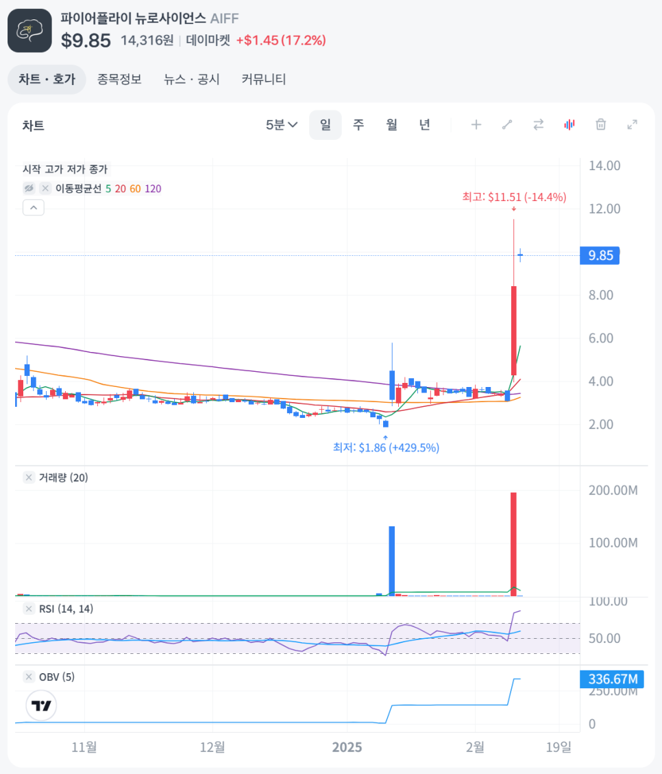 2025년 2월 11일, 엔비디아 커넥트 프로그램 가입 소식에 AIFF 주가가 50% 상승한 4.58달러를 기록했습니다.