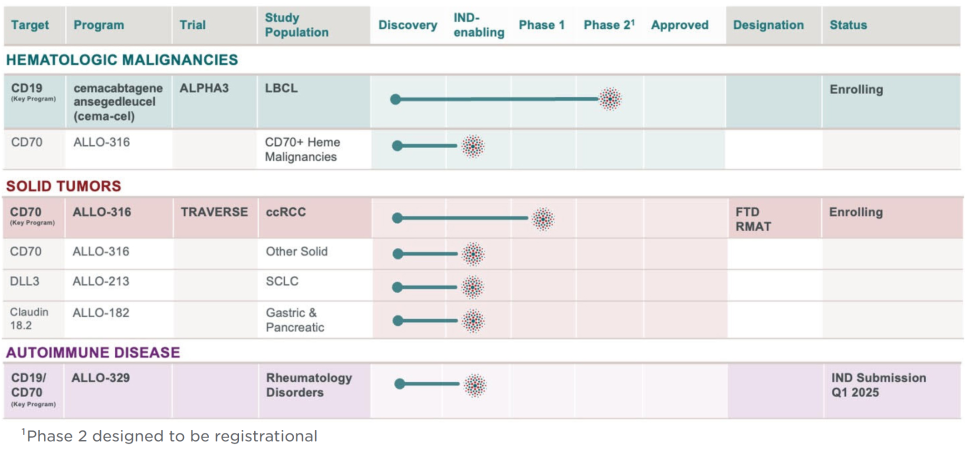 알로진은 지금 여러 종류의 암을 치료할 수 있는 CAR-T 치료제를 열심히 개발 중이에요. 특히, **"세마-셀(Sema-cel)"**이라는 치료제는 림프종 환자들에게 좋은 효과를 보여주고 있다고 해요! 👏